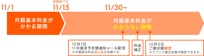 11月分の月額基本料金は11月15日までの日割料金にてご請求いたします。