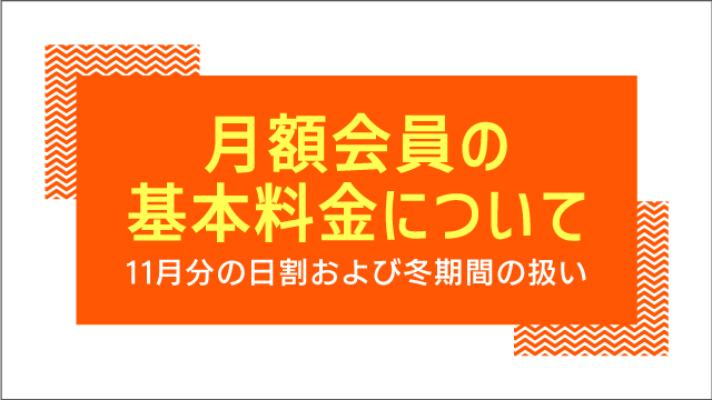 【お知らせ】月額会員の基本料金について(11月分の日割および冬期間の扱い)